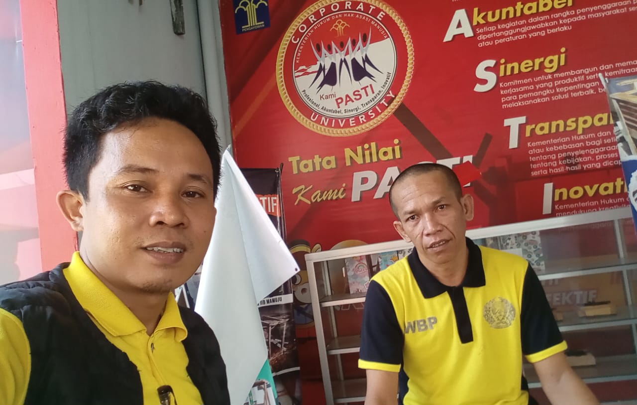 Foto: Penasihat Hukum korban, Hardianto Massarrang, S.H dengan tersangka Simon Somba di Rutan Kelas IIB Mamuju.