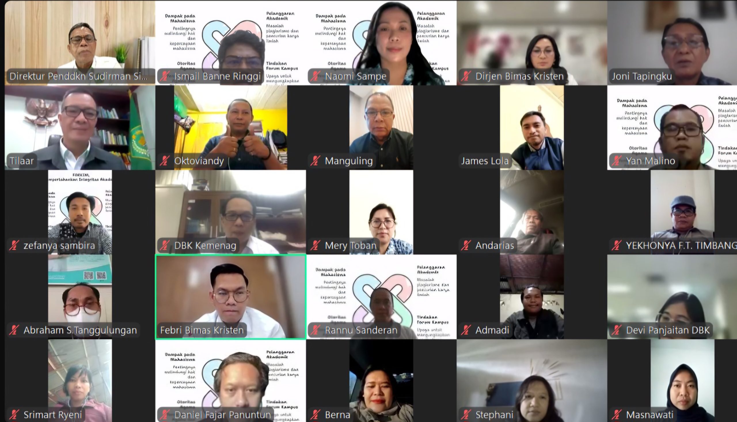 Pertemuan secara Daring ini juga dihadiri oleh sejumlah pejabat Direktorat Jenderal Bimas Kristen (DBK) termasuk Sekretaris DBK, Jhoni Tilaar, Direktur Pendidikan Kristen, Sudirman Simanihuruk, serta Kasudit Pendidikan Kristen, Salmon Pamantung.