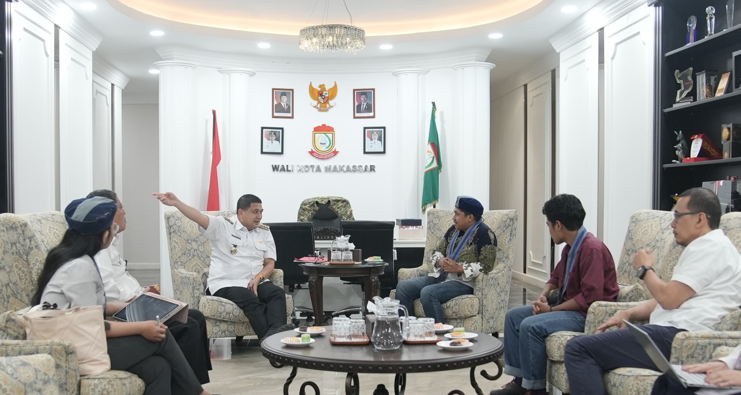 Ketua Cabang GMKI Makassar M. Vicky di dampingi Sekretaris Cabang Evi Sagita dan Demma Lana Ketua Panitia Keberangkatan Kongres GMKI di Samarinda bertandang ke Balai Kota Makassar bertemu Wali Kota Makassar. Rabu, 23 April 2025.