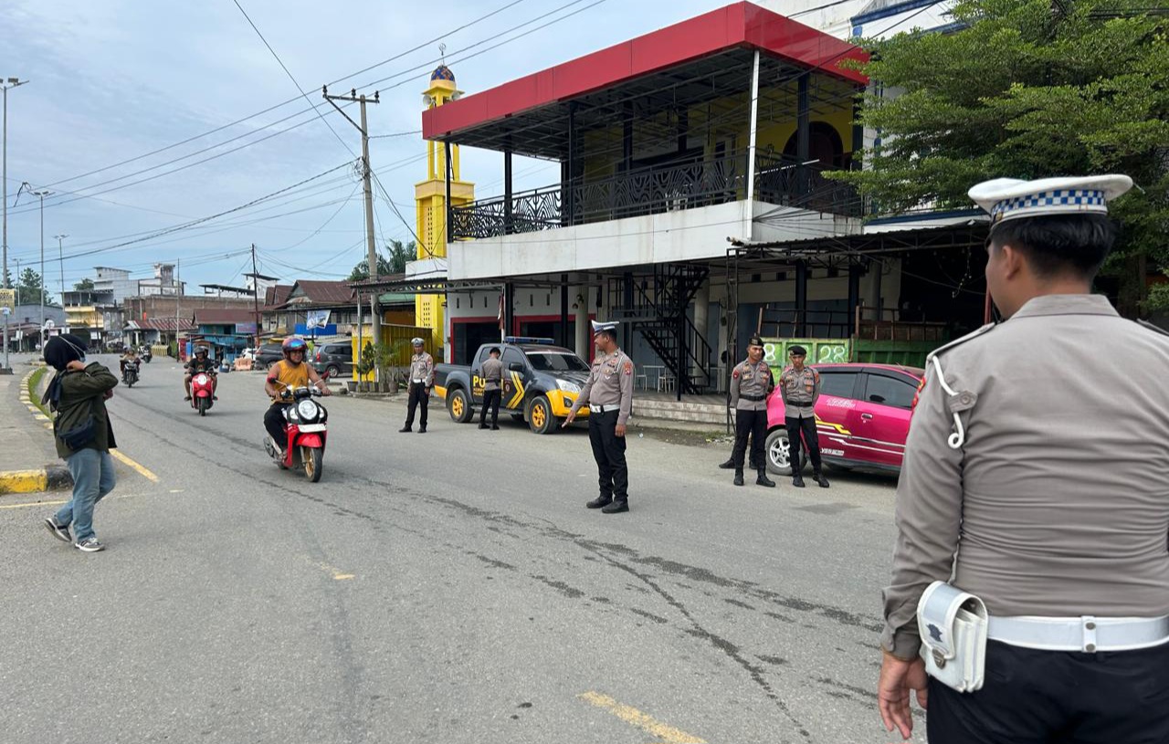 Kegiatan patroli dan pengaturan dimulai sejak pagi hari menyasar jalur-jalur utama seperti pasar topoyo, kawasan perkantoran serta ruas jalan padat kendaraan.