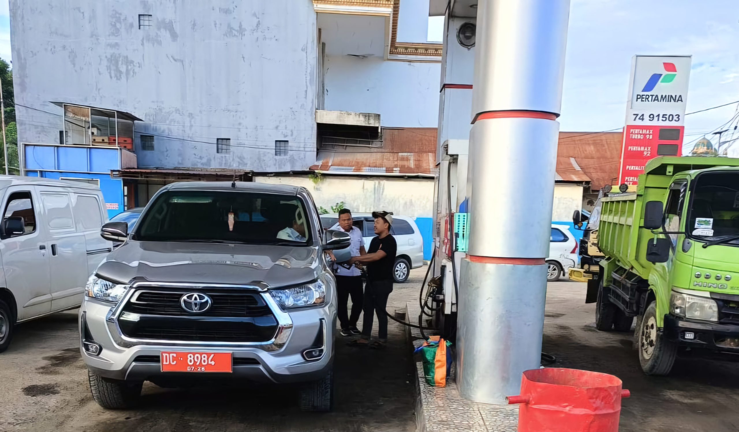 Sinarsore.com, Mamuju – Sala satu SPBU di Kota Mamuju kini jadi sorotan warga karena layani kendaraan dinas plat merah mengisi BBM jenis solar bersubsidi.